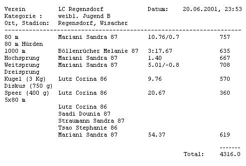 Resultate Weibliche Jugend B
